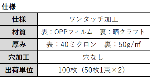 表はフィルム、裏は晒クラフト(ホワイト紙)を貼り合わせた