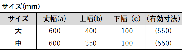 サイズの表記はa×b×c(mm)となっています